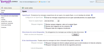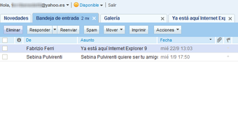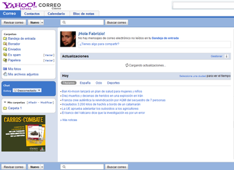 Integrado con la mensajería instantánea, Yahoo! Mail organiza chat, bandejas de correo y aplicaciones en una barra de pestañas. El panel lateral, tanto en la vista clásica como en la nueva, muestra las carpetas principales y los contactos conectados.